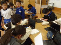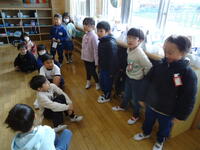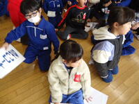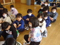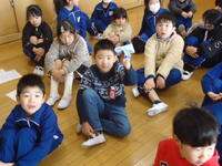 1年生は1・2組合同で、今週金曜日に実施の「ふゆとなかよし(昔遊び)」の、事前確認を行っていました。子供たちは当日を迎えるのを大変楽しみにしており、話し合っているその表情は笑顔で溢れていました(^^♪)。
