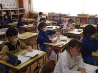 次に6年生児童対象の「租税教室」が実施されました。真岡市役所税務課の職員の方を講師としてお招きし、各クラス毎での実施としました。そこでは税金の仕組み等を中心に、大変分かりやすい説明を受け、子供たちは真剣な表情で聞き入っていました。