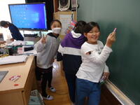 始まりの際には少々の緊張感が漂っていましたが、徐々に木村さんのユーモアたっぷりの巧みな話術にはまり、両クラスとも笑顔と笑い声の絶えない、楽しい撮影現場となりました。