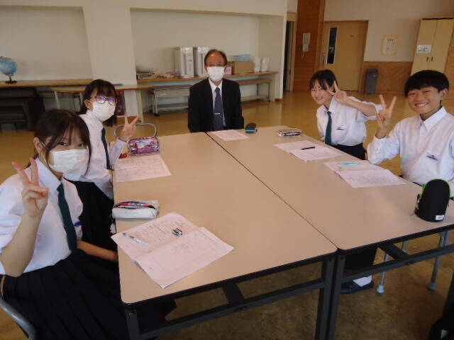 本日のお昼休み、「マイ・チャレンジ職場体験」のため、本校に体験学習に来る予定の、久下田中学校の生徒さん2年生4名が来校し、教頭先生と共に予定の確認を行いました。