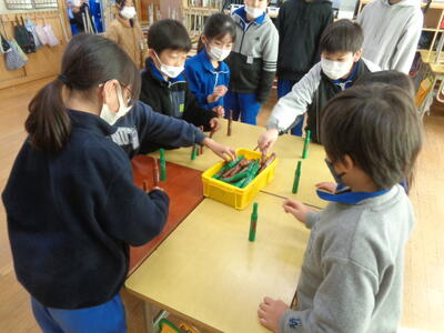 ・縦割り班は全部で24班。3カ所に分ける。 1~8班⇒1F先生コーナー前