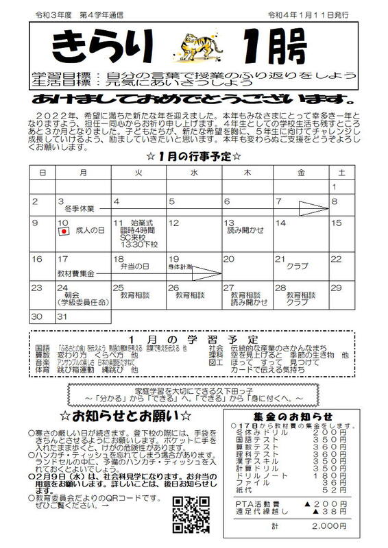 冬休みが明け、久しぶりに子どもたちの元気な姿を見ることができ、安心しました。