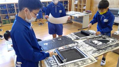 図工では、今年から木版画が始まりました。集中して、一生懸命に彫り進める子どもたち。