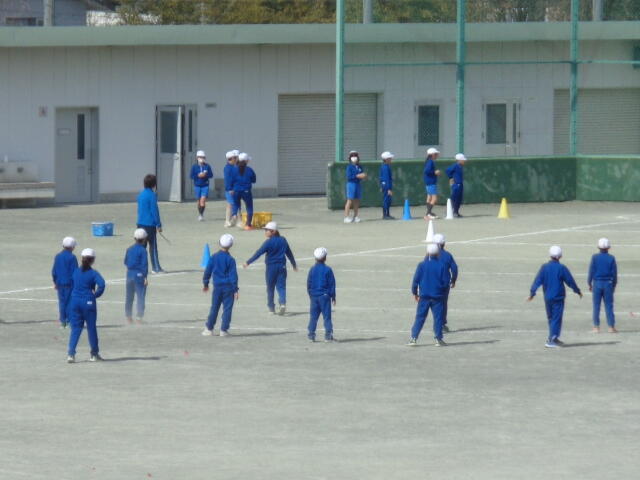 ★1年生児童が、校庭で元気に合同体育の授業に臨んでいました(#^.^#)❣❣