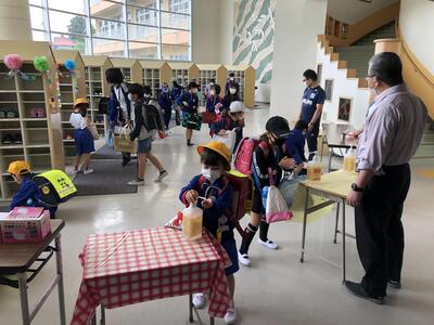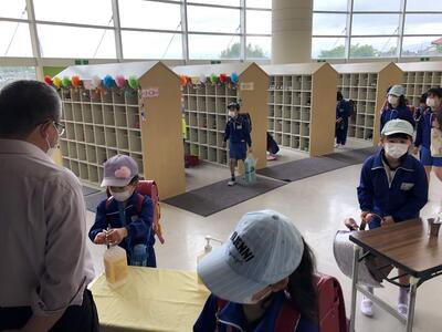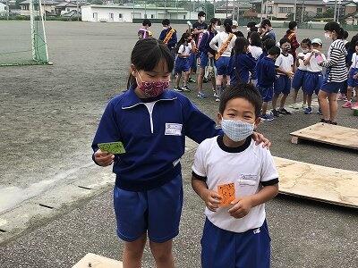 明るく元気な挨拶を返してくれた子には、「あいさつ名人」カードを配っています。