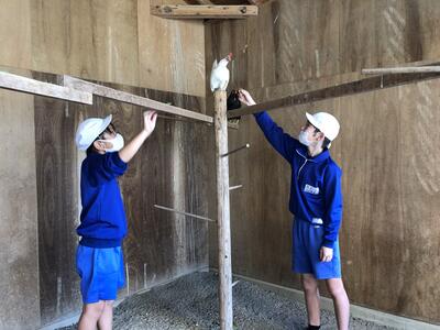 6年宿泊学習、1日目午前の活動は、「アスレチック作り」です。
