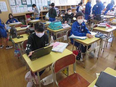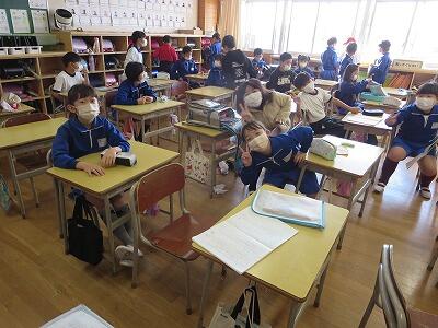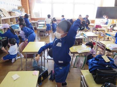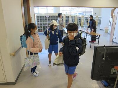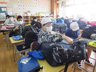 6年生は、自然教室の出発前です。