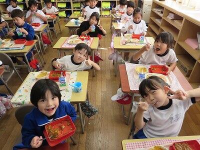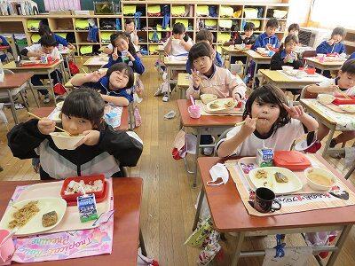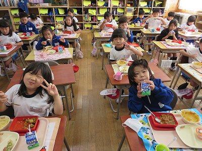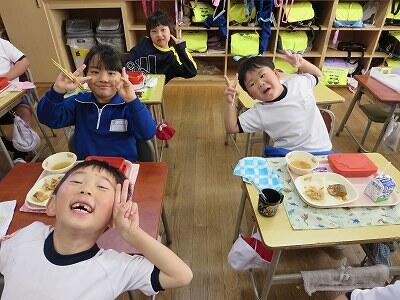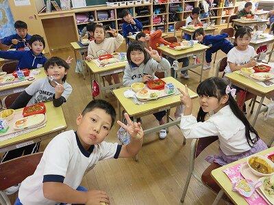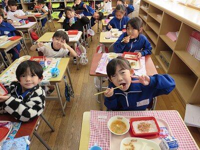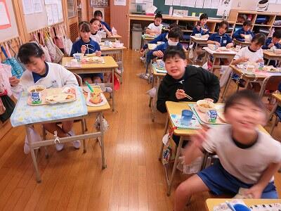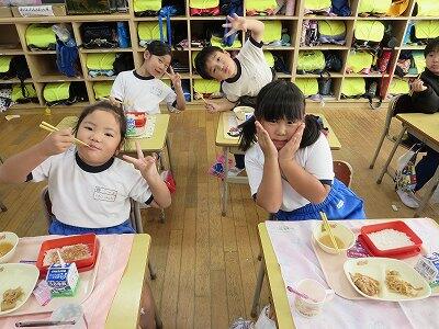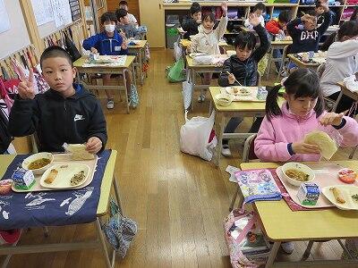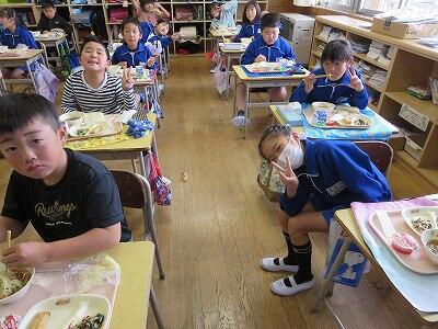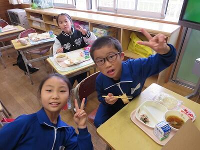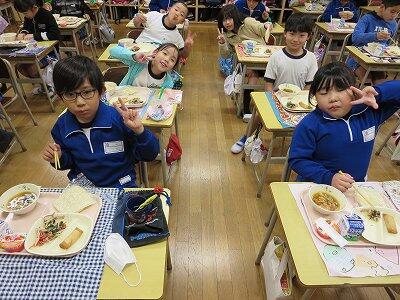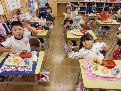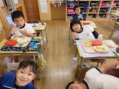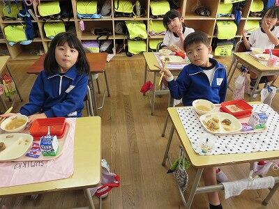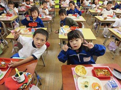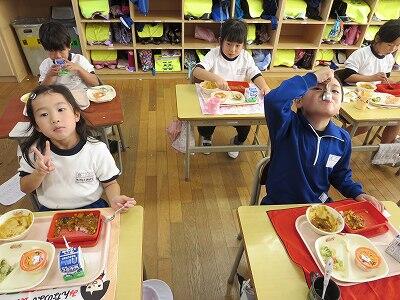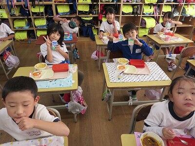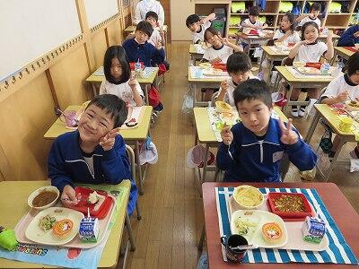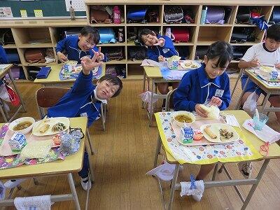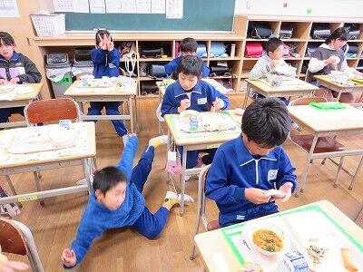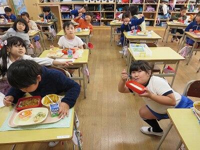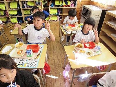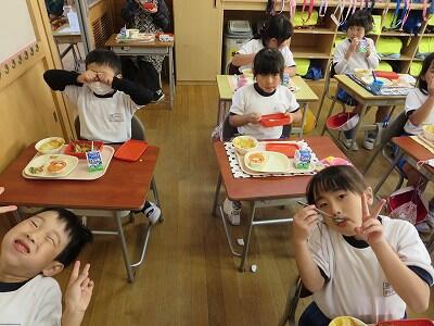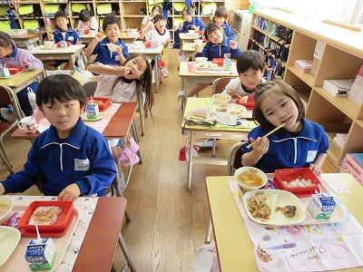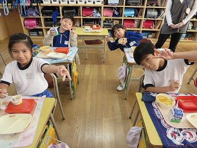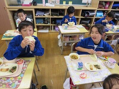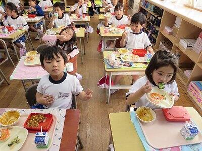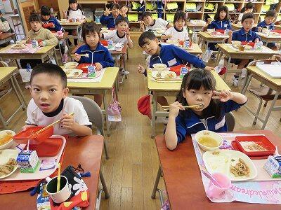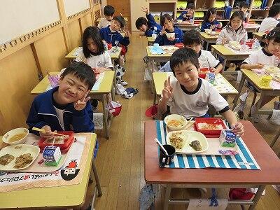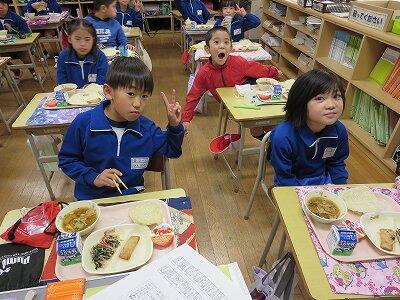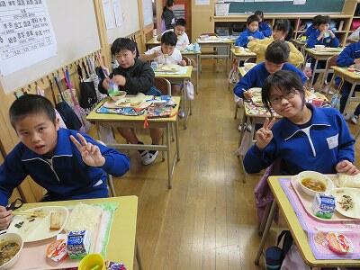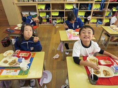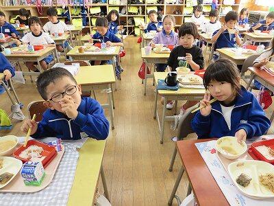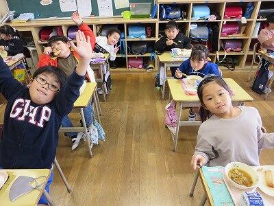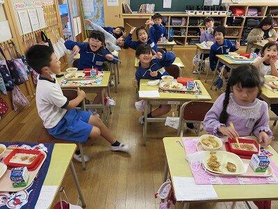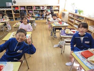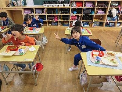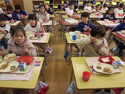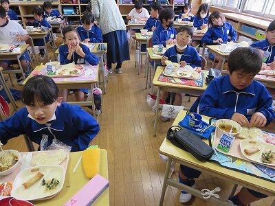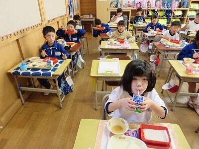 今日は、1・2年生の給食風景です。