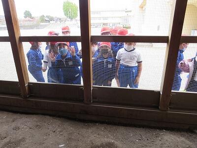 1年生が鳥小屋に集まってきました。