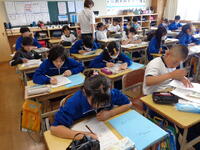 1年1組から順番に、各クラス3枚ずつ撮影しました。
