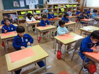 1年1組から順番に、各クラス3枚ずつ撮影しました。