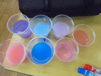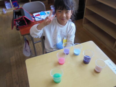 ★子供たちは、大変楽しそうに絵の具を扱い、様々な「きれいな色水」を作り上げていました(#^.^#)❣❣