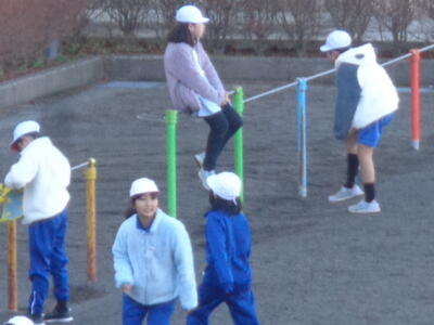 ★今週も週の始まりからすっきりと晴れ渡りました。お日様が顔を出しているせいか、そんなに寒くは感じませんが、時折吹き抜けていく風はやっぱり冷いです。子供たちは、友だちと元気いっぱい楽しそうに遊びまわっていました(#^.^#)。