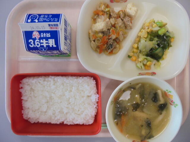 ★今日の給食は「肉豆腐丼」です! とっても美味しそうですね。感謝の気持ちを忘れずに、しっかり味わって食べてくださいね(#^.^#)。