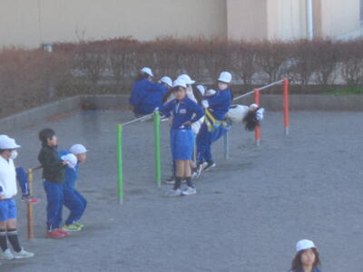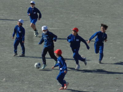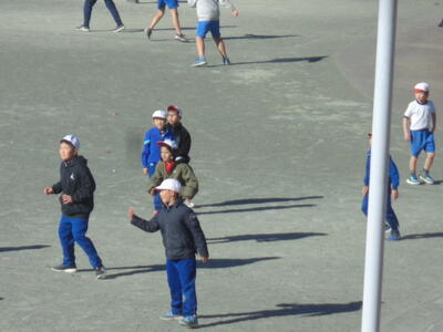 ★今日は朝からすっきりと晴れ渡りました。しかしながら気温が低いうえに北風が強く、体感温度も相当寒く感じます。それでも子供たちは寒さに負けることなく、友だちと元気いっぱい楽しそうに遊びまわっていました(#^.^#)。