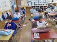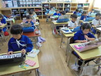 ★2年1組「音楽」では、みんな夢中になって「鍵盤ハーモニカ」の練習に取り組んでいました。