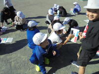 ★3年1組「理科」では、校庭に出て、虫眼鏡を使って「光集め」を行っていました。