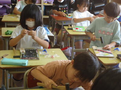 子供たちは「トンカチ」の操作に悪戦苦闘しながらも、楽しみながら夢中になって創作活動に臨んでいました。