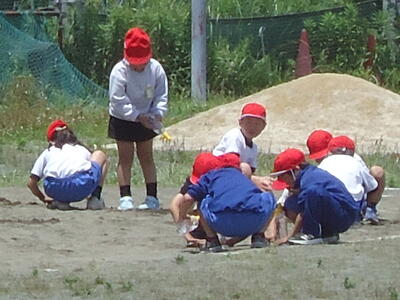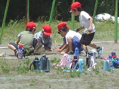 子供たちは校庭の砂場で「砂」を上手に利用しながら、楽しみながら夢中になって造形活動を楽しんでいました。
