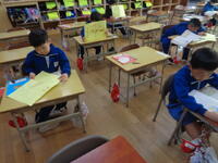 1年1組から順番に、各クラス3枚ずつ撮影しました。