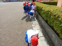 火曜日は「美化の日」があり、運動会後の校庭のごみ拾いをしました。