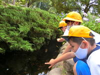 遊具で遊ぶ子、友達とおにごっこをする子、池の鯉を観察する子。それぞれ考え、遊んでいました。