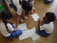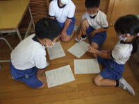 今度、西木戸公園に行きます。国語のクイズ作りに必要なもの探しや、グループで遊ぶ内容について、各班で話し合いをしました。