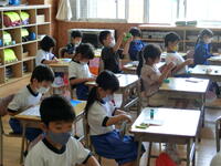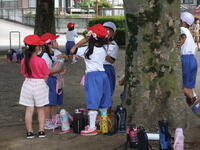 暑い日が続いていますので、水筒やハンカチを忘れずに持っていけるように声かけをお願いします。