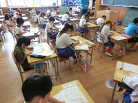 今日は新体力テストの「シャトルラン」をやりました。6年生にお手伝いをしてもらって行いました。残りの新体力テストは来週の木曜日に実施予定です。アンケート用紙を本日渡しましたので、6月9日までにご提出ください。