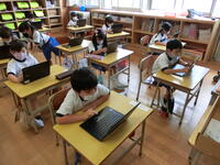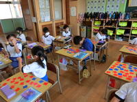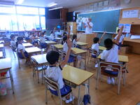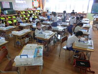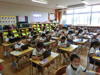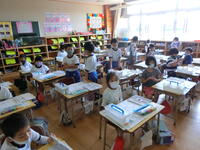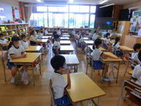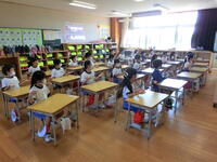 臨時日課のため、外遊びの時間がありませんが、元気に頑張る1年生。