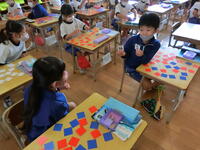 算数は10より大きなかずの学習を行っています。数字カードを使って数の大小について学びました。