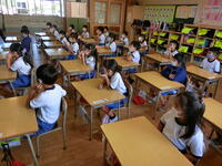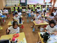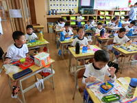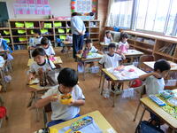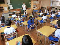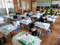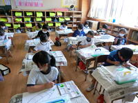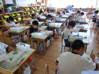 初めて習う漢字。正しい書き順で丁寧に書く子どもたちがたくさんいました。