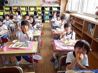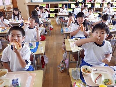 ソーセージをパンに挟んで、大きな口でおいしそうに頬張っていました。