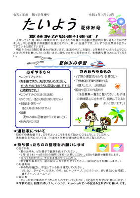 1年学年だより 夏休み号
