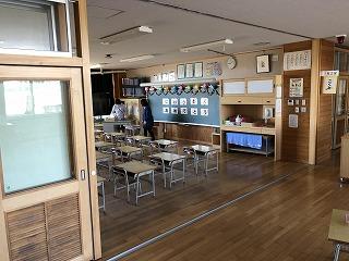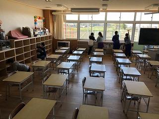 コロナウイルスの対策として、各教室の廊下側の壁を取り払い、机の間隔を広げました。