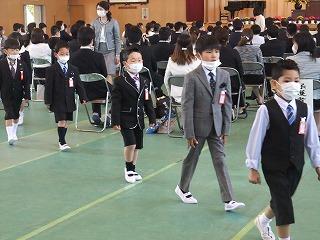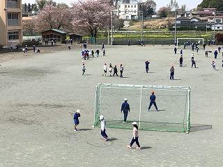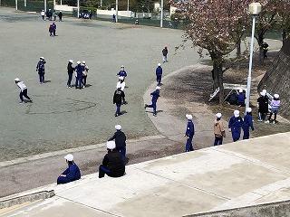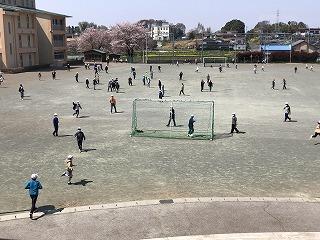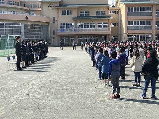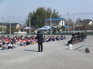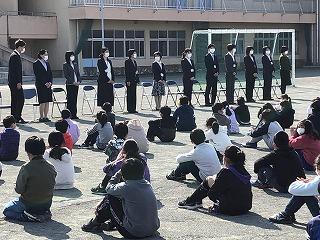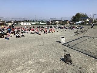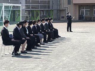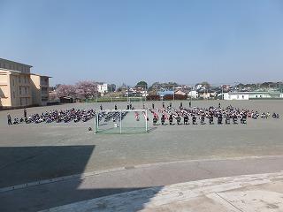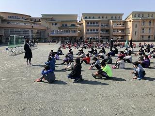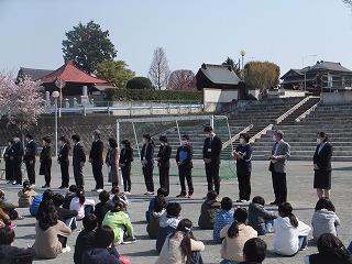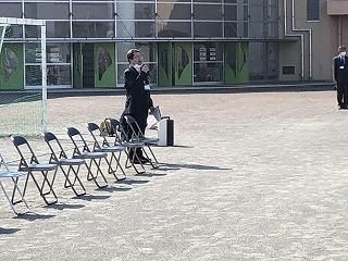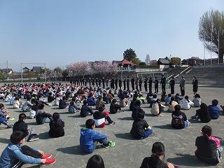 4/8 新年度のスタートです。今年は、校庭で式を行いました。