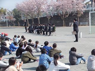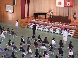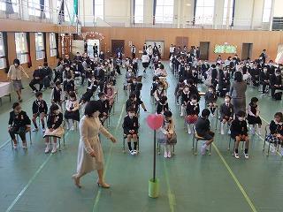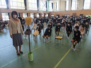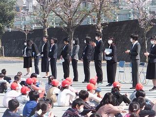 子どもたちの前に先生方が並び、校長先生から発表されました。