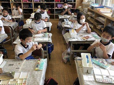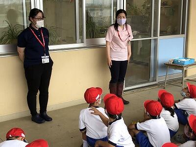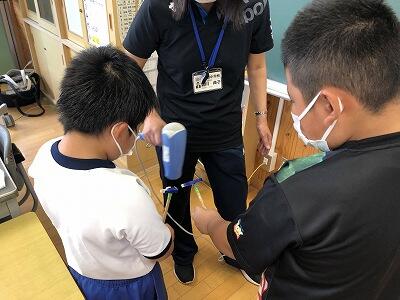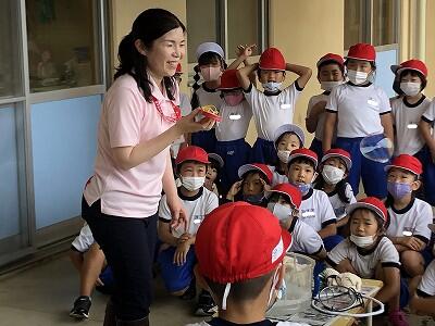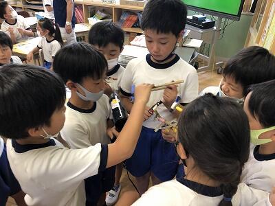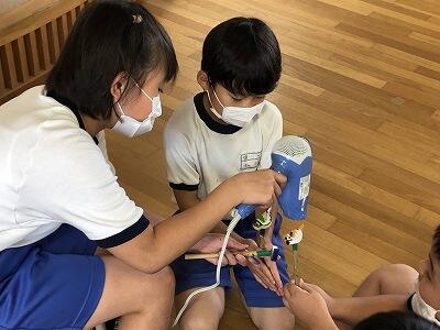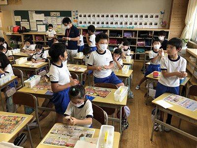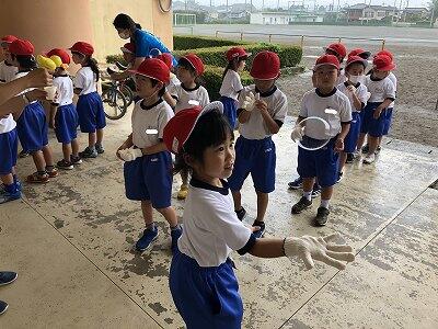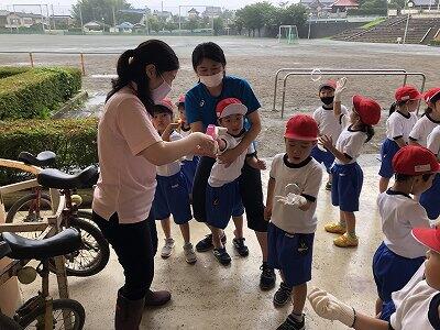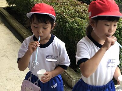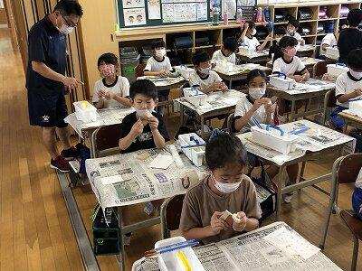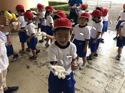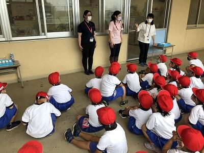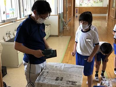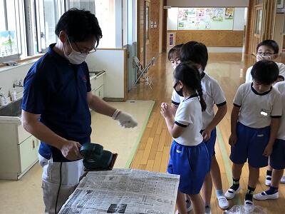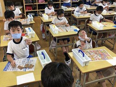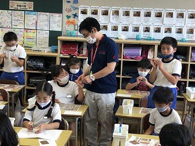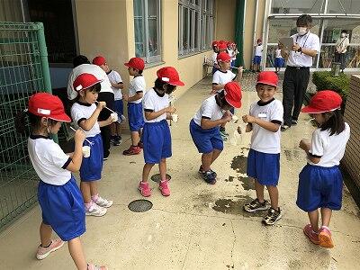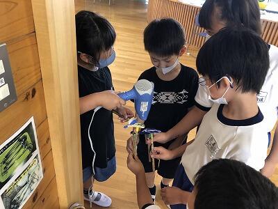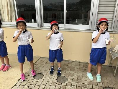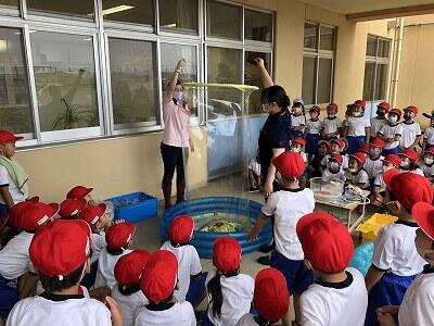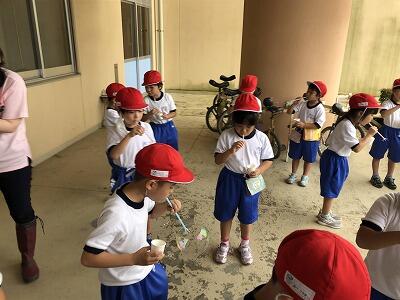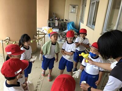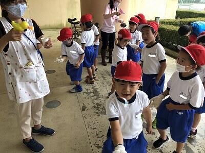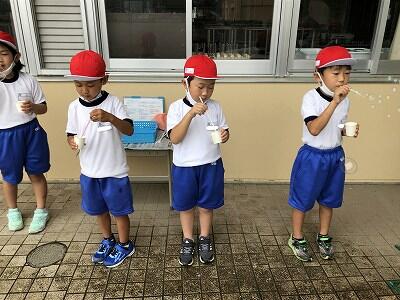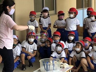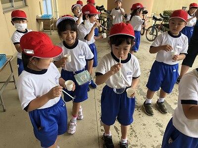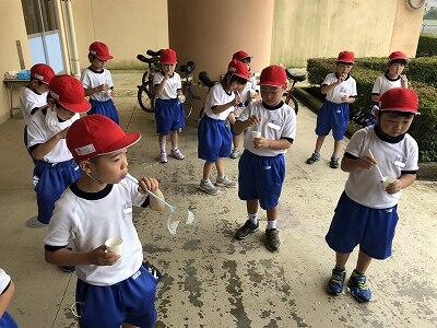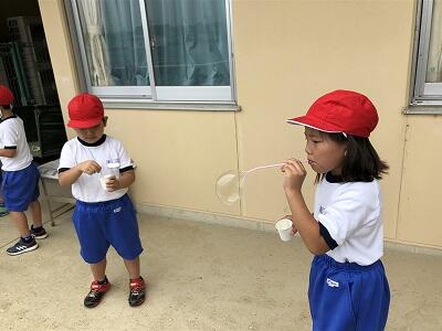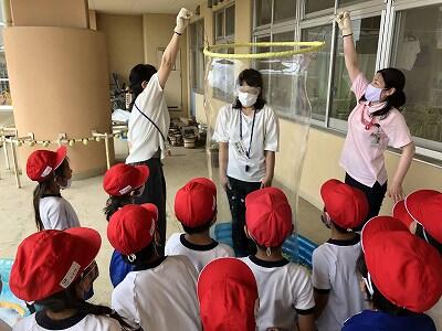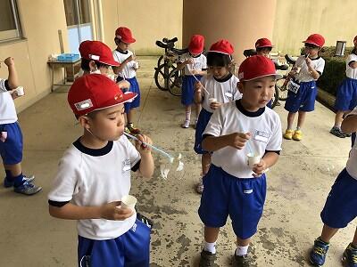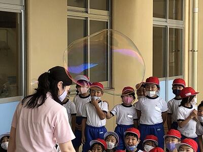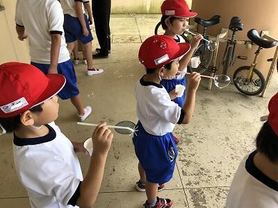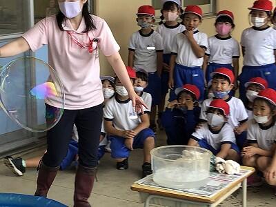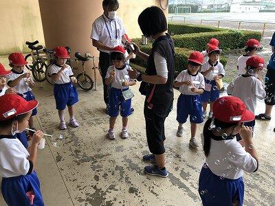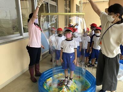 7月28日、1年生が科学体験(シャボン玉)を行いました。