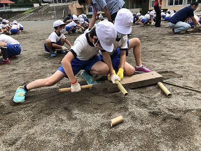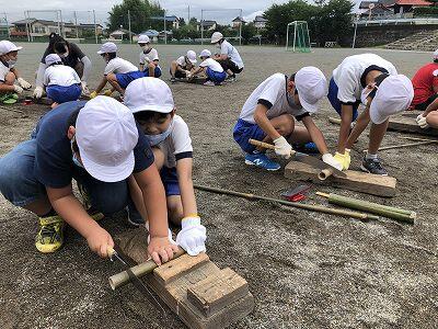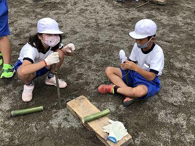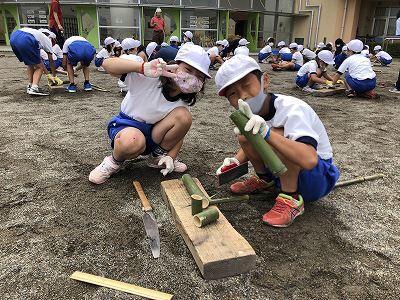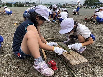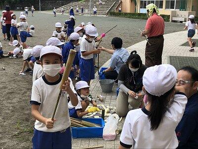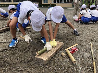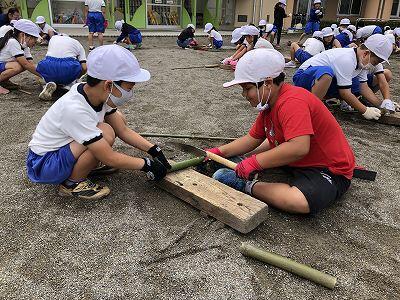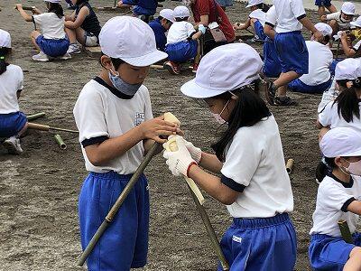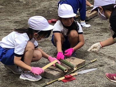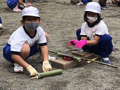 7月30日、2年生が自然体験(水鉄砲作り)を行いました。