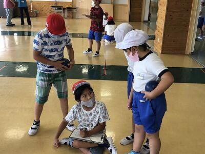 みんな真剣に、ねらいを定めて、思い思いのポーズで投げていました。