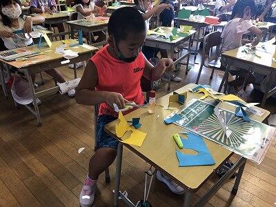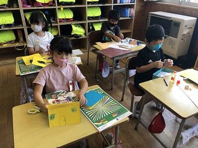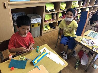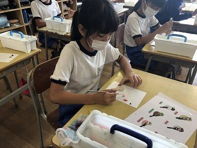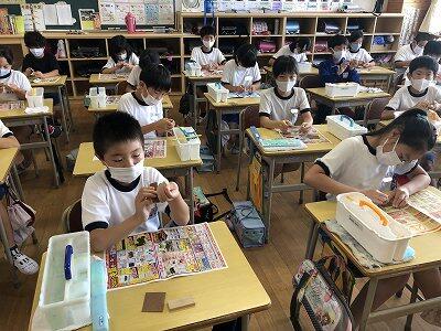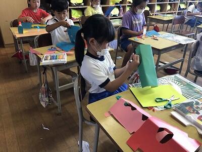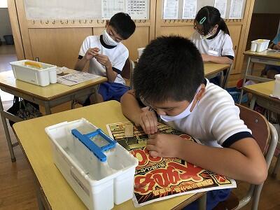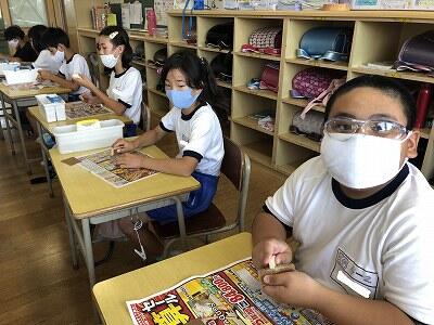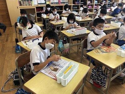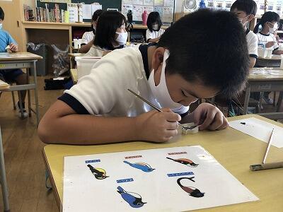 8月19日、4年生の自然体験2日目、野鳥ブローチづくりの様子です。