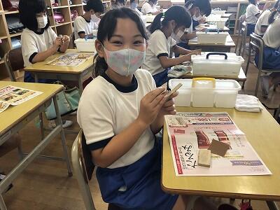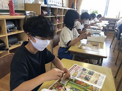 8月24日、6年自然体験のもう一つが、勾玉作りです。