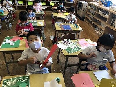 8月19日、4年生の自然体験2日目、水鉄砲づくりの様子です。