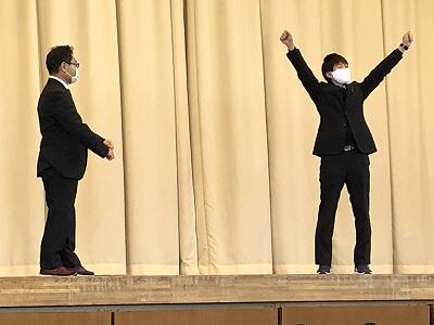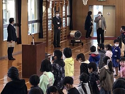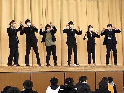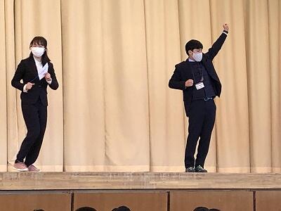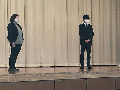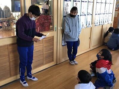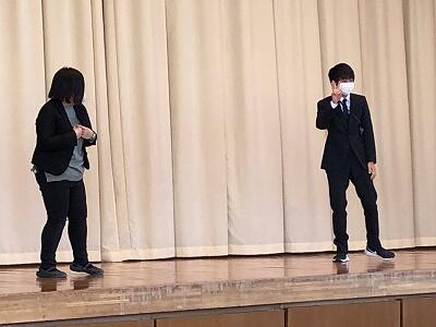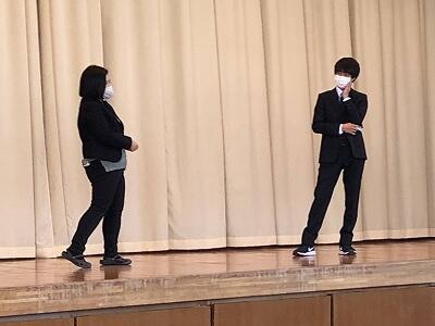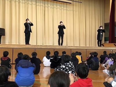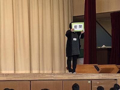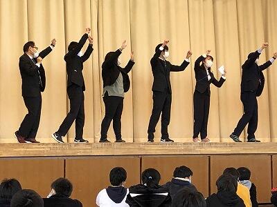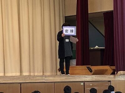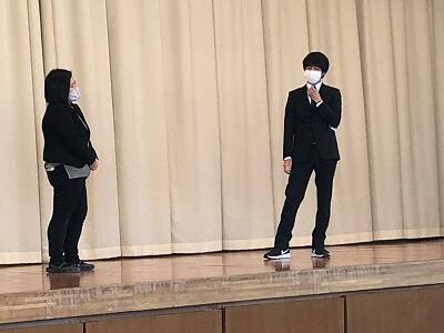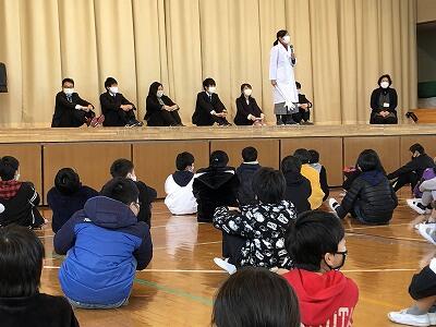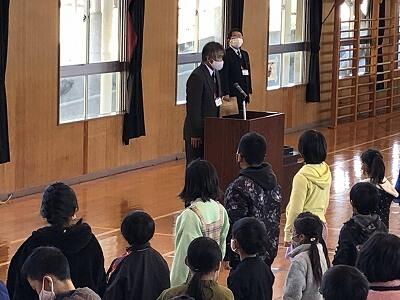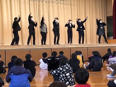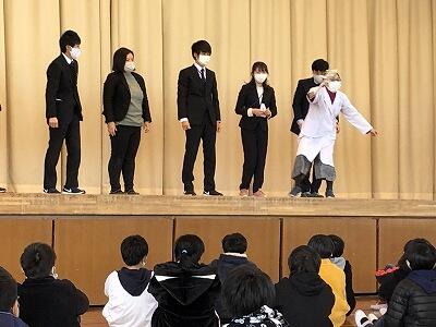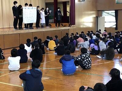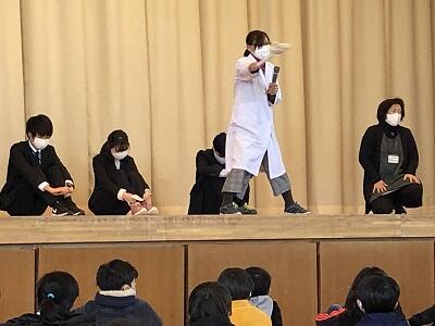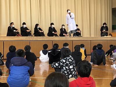 12月25日終業式の後、冬休みの生活について「先生方の寸劇」がありました。