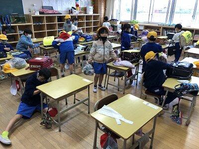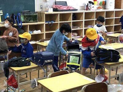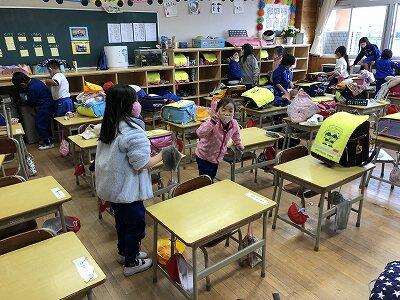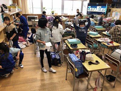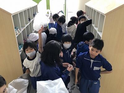 教室内の机、ロッカーの中はもちろんのこと、下駄箱や置き傘まできれいにしました。