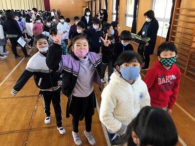 今週は寒い日が続きましたが、元気な姿を見せてくれた久下田小の子どもたちです。