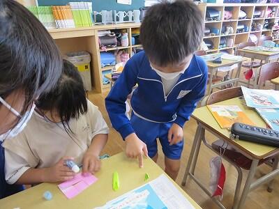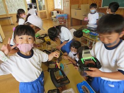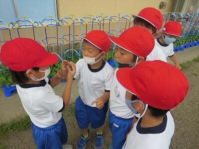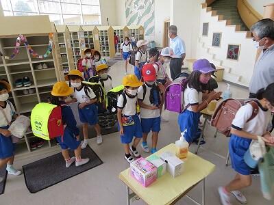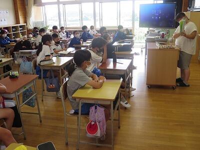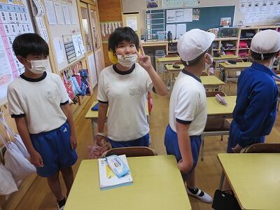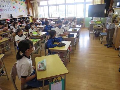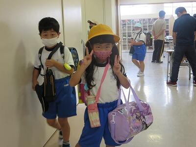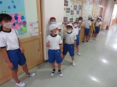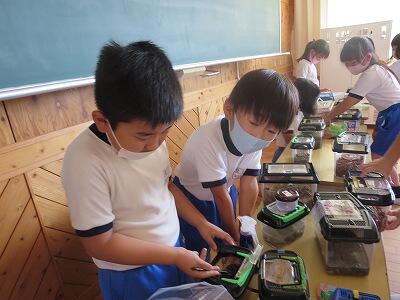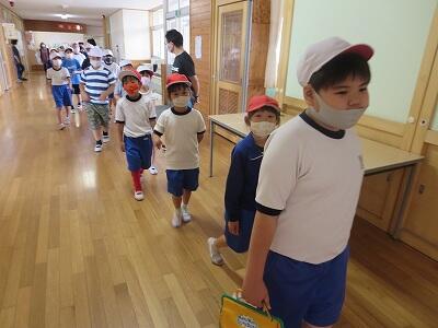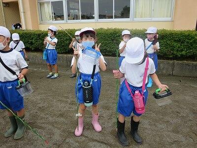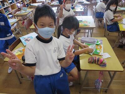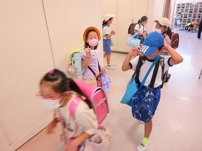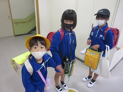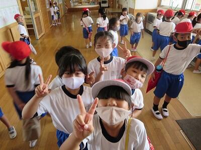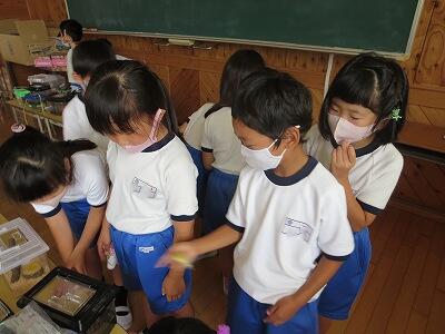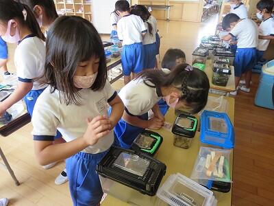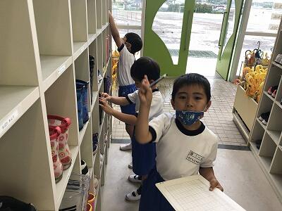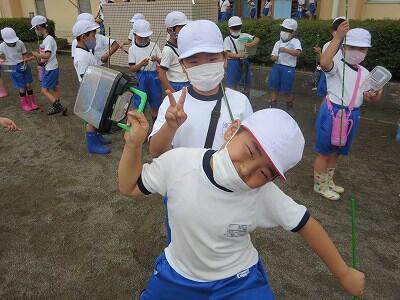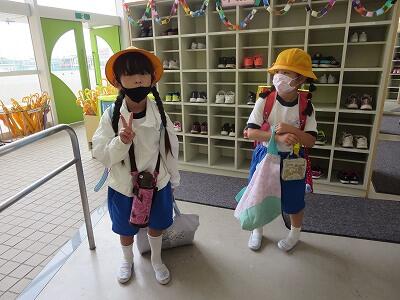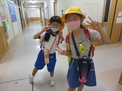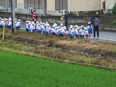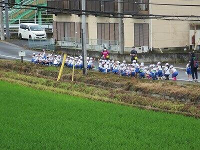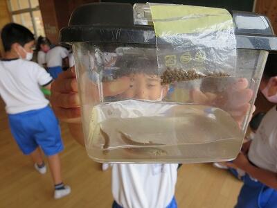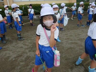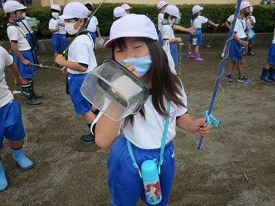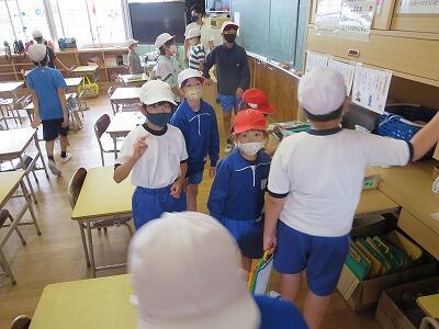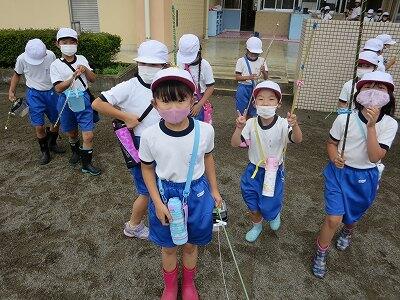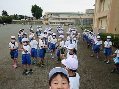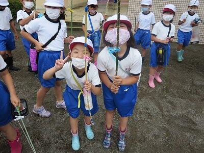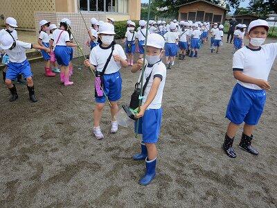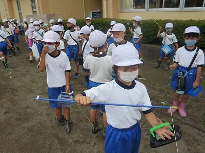 2年生たちが、校外学習の準備をしています。今日は、ザリガニ採りです。