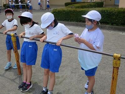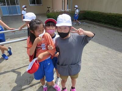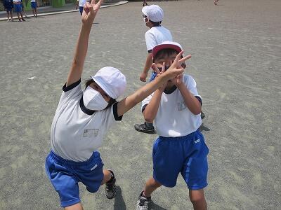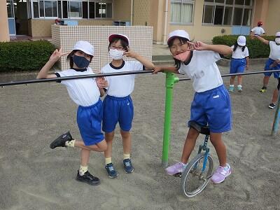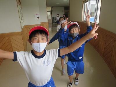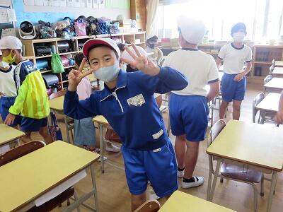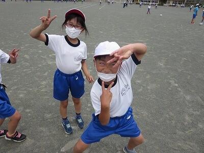 午前中で雨もやみ、昼休みには校庭で元気に遊ぶことができました。