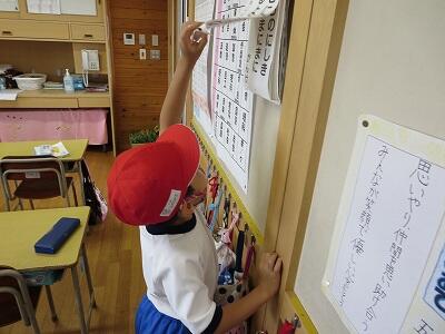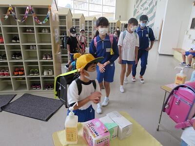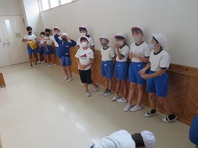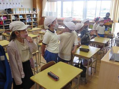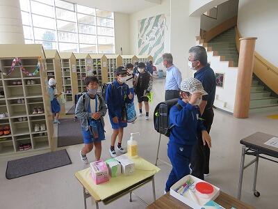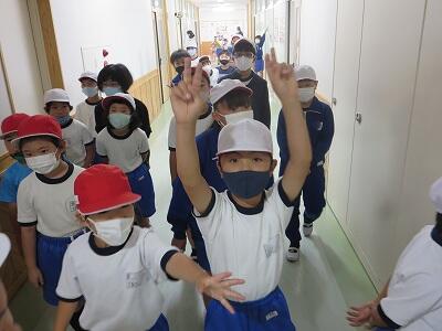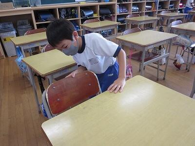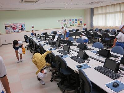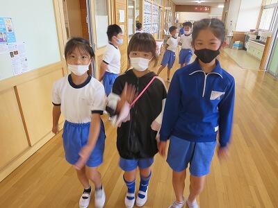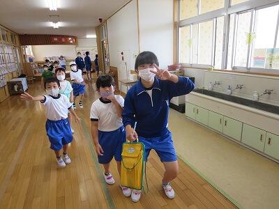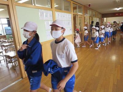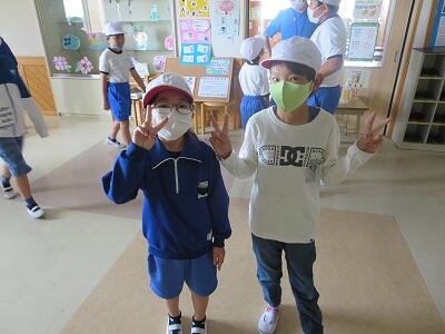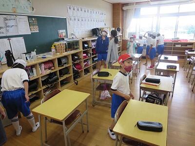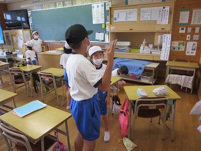 校舎内を、清掃班のみんなと協力して活動していた子どもたちです。