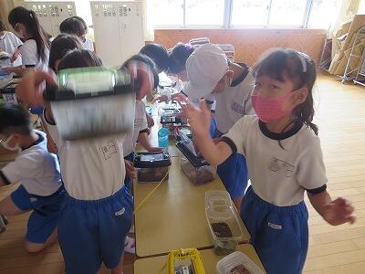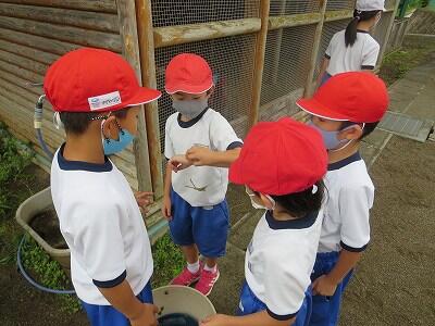 飼育委員の子どもたちです。エサとなる野菜の種まき2回目です。